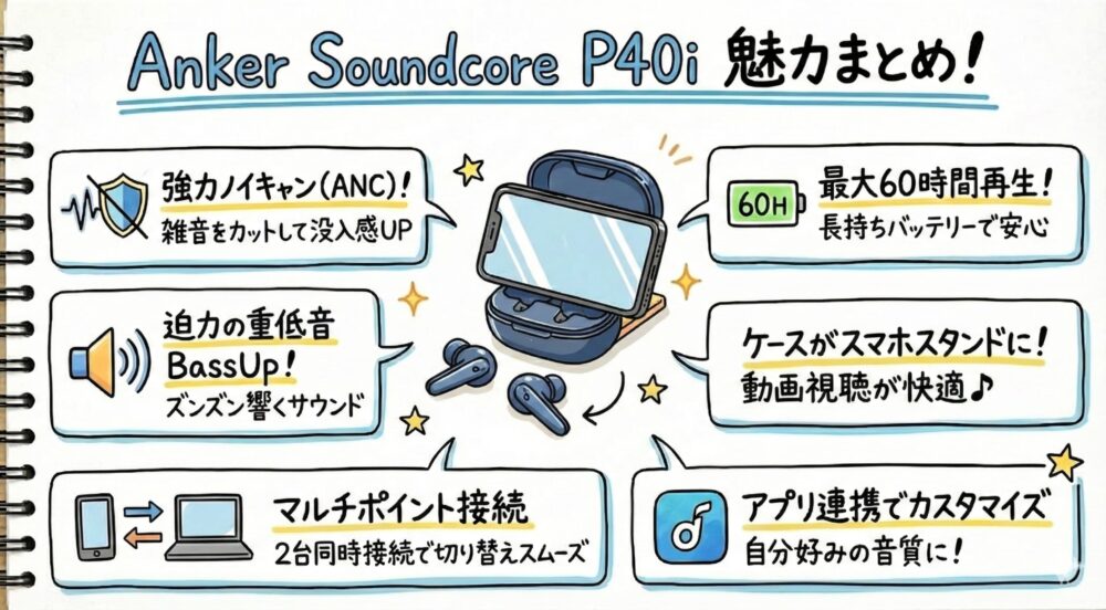 音質・機能・価格のバランスを重視するなら、Anker Soundcore P40iは最強の選択肢です!