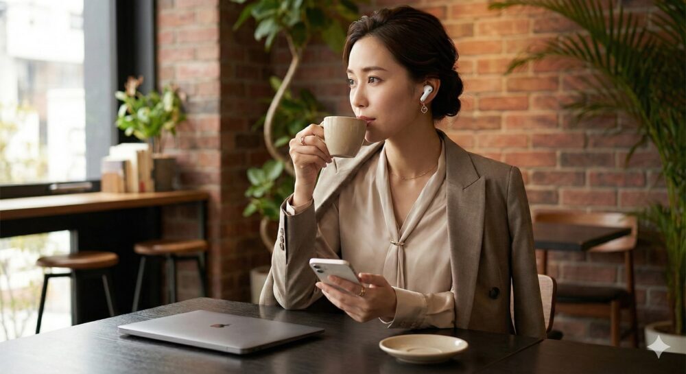 カフェではエスプレッソマシンの音や周囲の話し声が程よく軽減され、オフィスでは空調音やタイピング音がかなり軽減されます。静かな環境をつくるというより、集中できる空気をつくってくれる感じです。