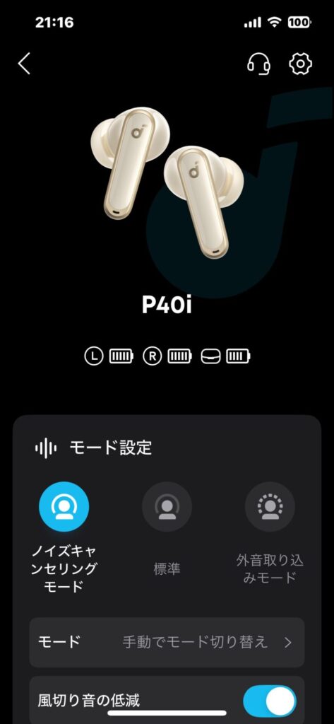 P40iに搭載されているのは、Anker独自の「ウルトラノイズキャンセリング2.0」。環境に応じて自動でノイズを検知し、リアルタイムで強度を最適化してくれる仕組みです。