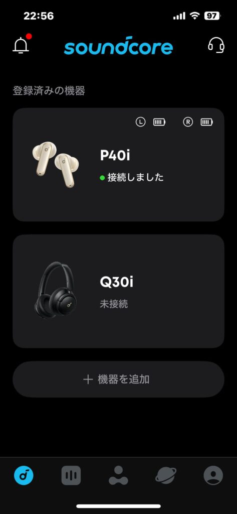 ここからがP40iの真骨頂。 専用アプリ「Soundcore」でEQ(イコライザー)を調整することで、音の印象が劇的に変わります。